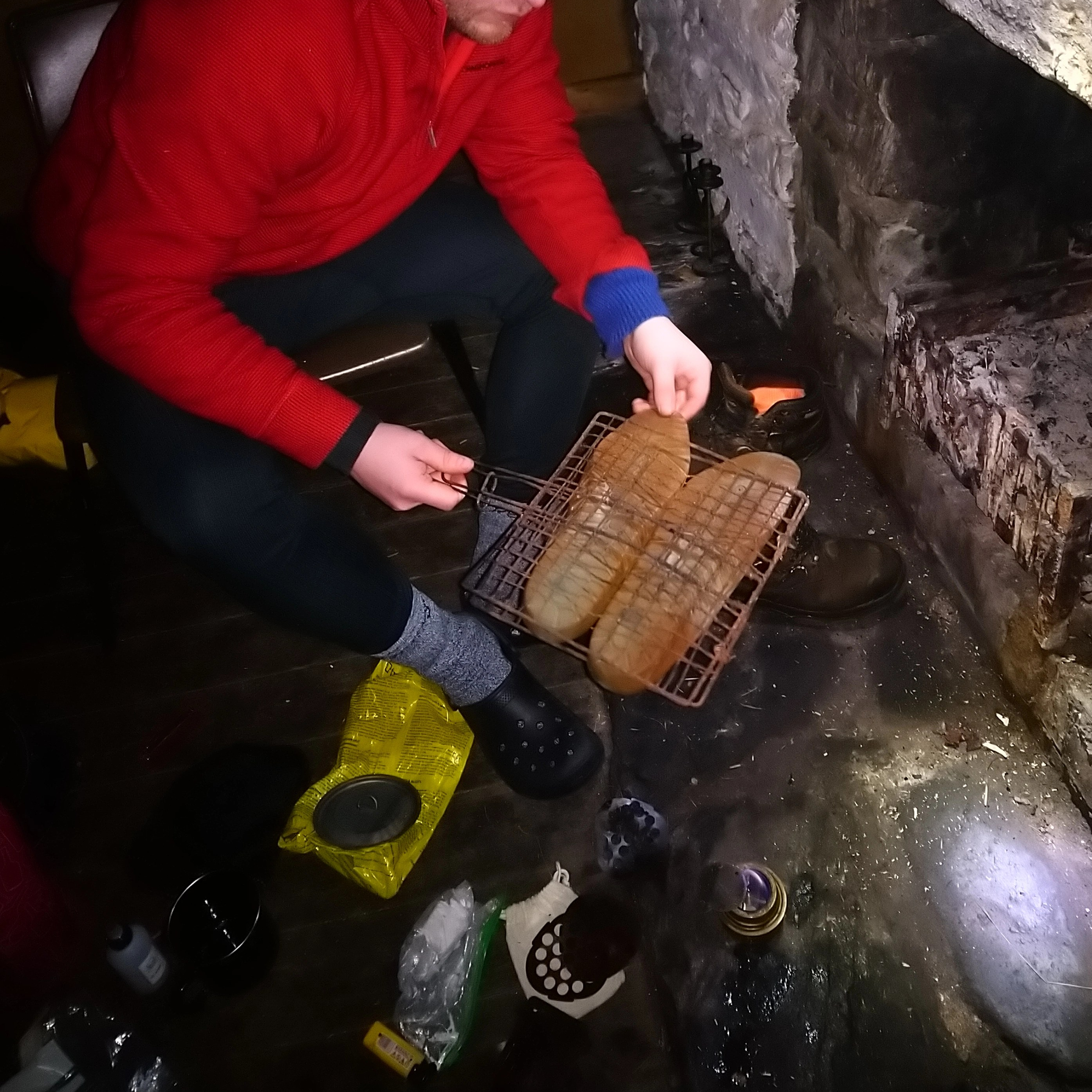 With Jacks boot humming cheerfully in the gloom and the alcohol burner flickering we began eating and drinking as much as we could, thinking as much about lightening our future selves' burden as we were about filling our bellies. It quickly became apparent we had only bought one spoon, and a civilised agreement was soon made over its shared use. Sat in the dusk, content in our jackets as the night grew dark and the wind howled in the chimney, all our jokes about whether Ken would in any way be pleased to know that a couple of strangers were heading to find him took on a new poignancy. Why were we out here in the middle of nowhere? Did we really expect that our attempts to meet this old man, who had made a deliberate and unambiguous decision to leave society, to be well received? Worse yet, what if we were just the most recent in a long line of pests who had been swarming him since the film? Bothersome paparazzo, like midges - but bigger and smellier.