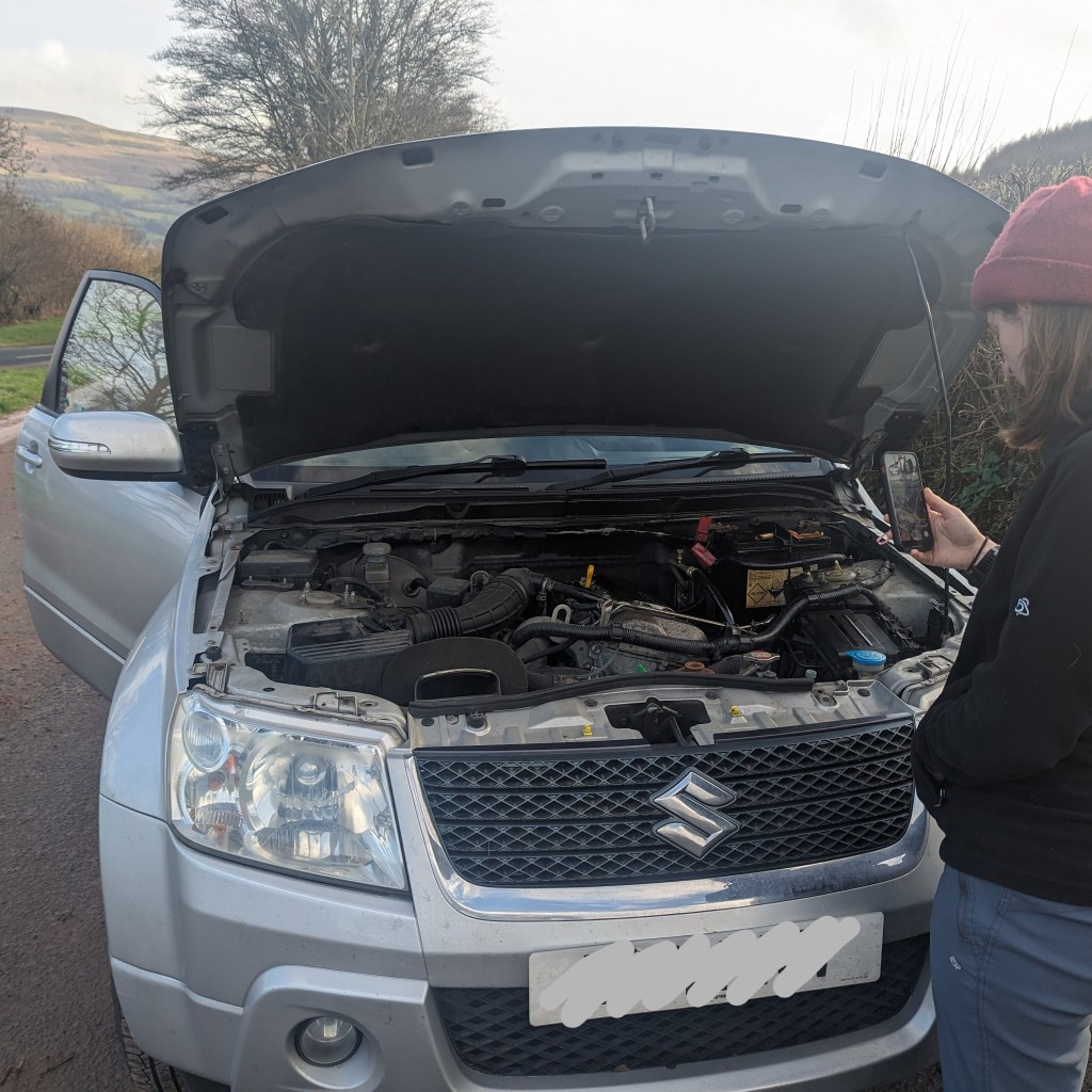 Started the day right with a breakdown on the A40. Having pulled over into a layby around 20 minutes from trailhead for something else, I was surprised to register the smoke pouring out from under the bonnet, and the acrid smell starting to fill the vehicle. Not what you expect after getting the all clear on your MOT the day before, especially having just had to shell out several hundred quid in repairs. Someone had not screwed the oil cap back on properly and it had worked itself loose in the 60 miles from Bristol to Brecon. The outlook was not good.