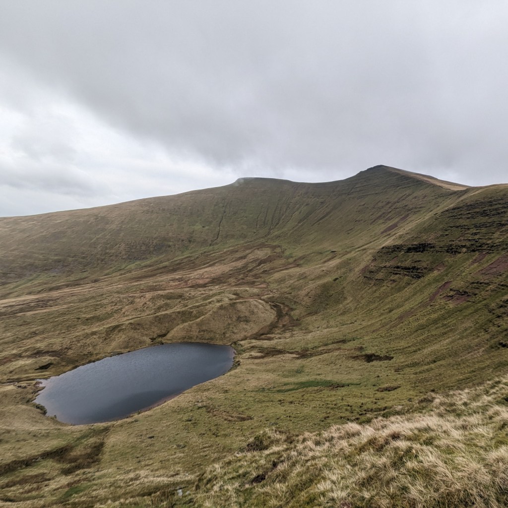 The walk was good. We hadn't been here since the previous February and were attempting it this time with loaded up backpacks with around 6kg apiece. My calves were in distress for the first thirty minutes but soon calmed down. Instead the main concern revealed itself to be the wind blistering us from the east. It was a clear enough day, though the very top of Pen Y Fan was in cloud for most of the afternoon.