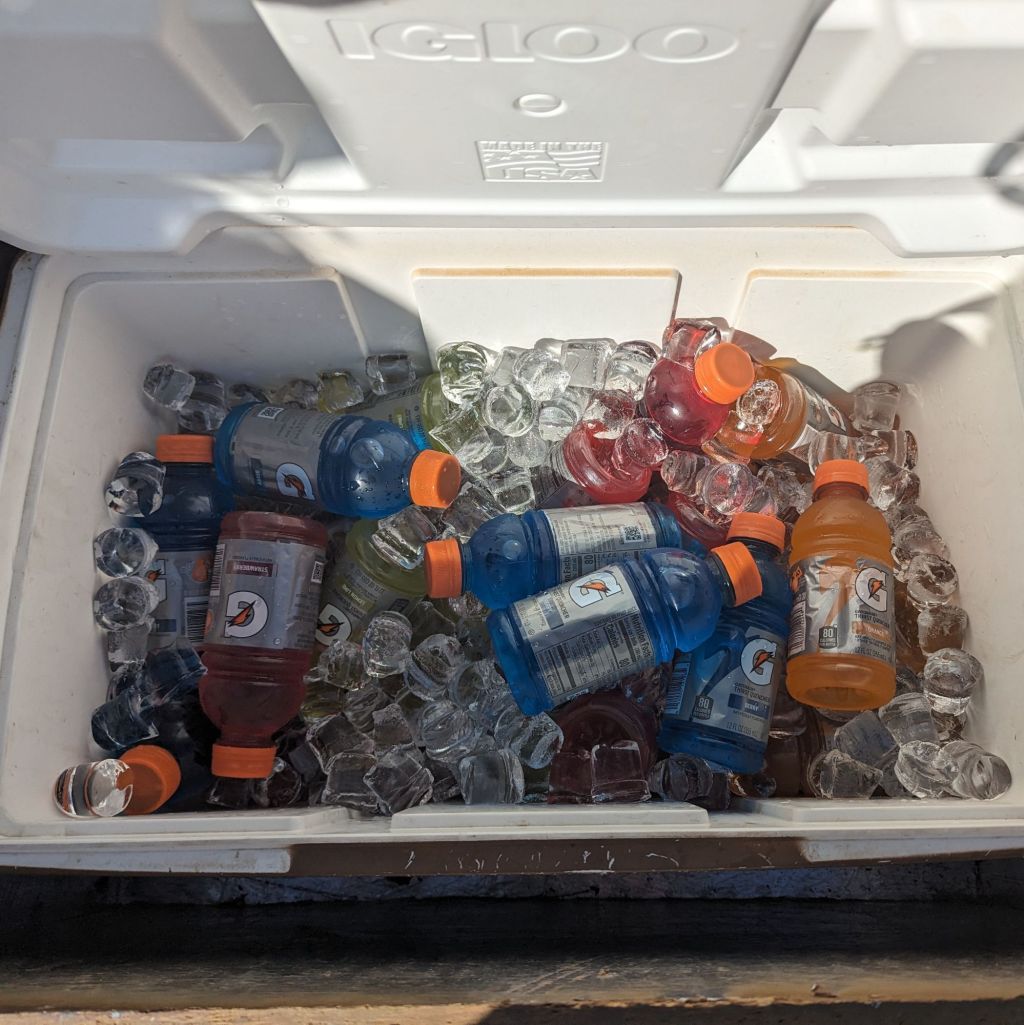 Saturday 25th May (day 28) - Walked 20.9 trail miles. Rained on slightly in the night. Got up and moved fast. Very little food on our bags left and the promise of a McDonald's for lunch if we could make the miles in time. 15 miles down before 12pm, the hours going by in a cold and humid blur. Very windy coming up over and getting our first glimpse of Cajon Pass. Ate a double quarter pounder with cheese and bacon, plus fries and a large coke. Bought fruit from a man with a stall by the gas station, including the Mexican chayote which I had never encountered before. Walked another six miles through various underpasses to a water cache being restocked by a man calling himself Devilfish. He roped Grace and myself plus Dave and Frankie into helping and we dutifully re-filled around 150 litres from the back of his truck.