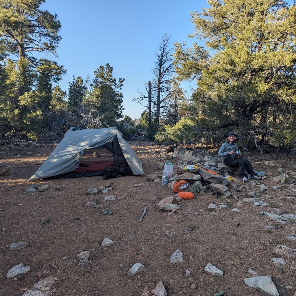 Sunday 26th May (day 29) - Walked 16.1 trail miles. Made the mistake of checking FarOut before heading off in the morning. Disheartening. Several thousand feet of elevation gain, straight up. So hot by 11:30am that we took respite in a small overhang, which by 2pm was little more than a crack in the wall. Felt better for it though. Crunched out the remaining 11 miles with some discomfort but no lasting damage. Stayed at Mandy and Diego's on the porch, ate pizza, showered, and met the lovely dogs (and bizarre prolapsed lizard - and Argentine 'tegu').