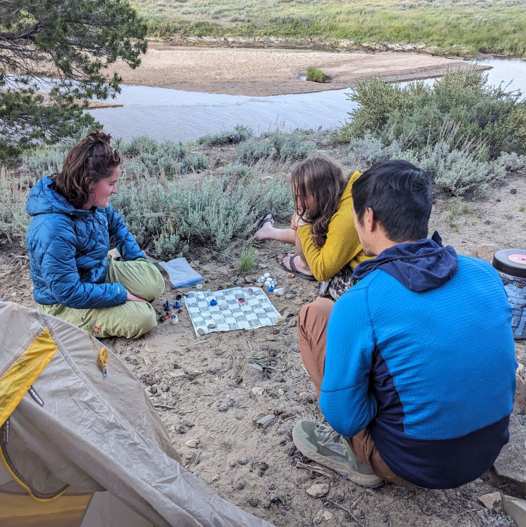 The afternoons are cooler, and the hiking hours longer as a result, meaning you naturally get up later and stop earlier. The night-hiking of the desert is briefly over, and you enjoy the more natural diurnal rhythm of a daytime walker. Of course, the chilly evenings sat stationary need filling, and the more innovative among us make their own entertainment (a chessboard crudely drawn on a sheet of Tyvek).