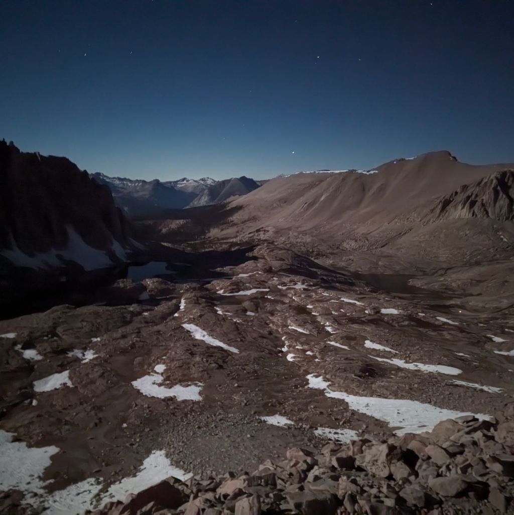 Coming off trail and into Bishop shortly after Forester Pass, it became apparent that nearly everyone had underestimated how much food, battery, and bug spray they needed to make it the full week from KMS. The combination of altitude and long days, with the extremely beautiful scenery and alpine lakes begging to be swam in, meant that by the final days everyone was sweating to get to the trailhead. There was a rumour that Two Books' mum was going to pick us up on the morning of the final day to give us a ride into Bishop, which only added to the urgency (it was a 40 mile hitch otherwise, and not a particularly straightforward one either).