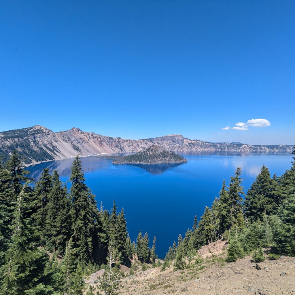 We made the 100 or so miles to Crater Lake in good time. For the first time in a while it felt like there was room to breathe a little; the miles were less tiresome and the elevation less extreme. The afternoons were still hot, but usually shaded, and we had time for a couple of side quests; one to bag the Devil's Peak, and another to hitch into the Fish Lake resort for burgers (weird tension with the staff there, mid food, 10/10 root beer floats). This was also the first time I had managed to get my resupply dead on, arriving in town having just finished my last energy bar. The final miles themselves were appallingly bleak, having burned intensely a few years ago, and with subsequent storms blowing down many of the dead or dying trees near the path. Picking a way through was exhausting, and without the shade of the canopy it was a hot and dusty business. But make it we did, and to our pleasant surprise we were met at Mazama Village by Shrimpin's folks again who brought us lunch and took us up to the rim of Crater Lake to get the best view of the incredible volcanic crater for which the National Park got its name.